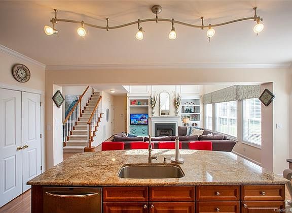 Wonderful Ballantyne home with magnificent kitchen and open floor plan on a cul-de-sac lot in the Ardrey Kell High zone. You'll fall in love with your updated kitchen revolves around a dramatic 8-foot seamless granite island, overlooking your spectacular 2-story great room. Your new kitchen features stainless steel appliances, Grade 3 granite & cabinets and Travertine backsplash. Stunning natural light bounces off hardwoods. Entertain in your 2-story great room (with gas fireplace) flowing seamlessly into the kitchen and onto your 363-sf deck overlooking your private backyard with a custom fire pit. Your parents will love the in-law suite on the main. 4-piece crown throughout the main, plus electric blinds. Ginormous 575-sf master suite with bay windows, 2-person jetted tub. True 4 bedrooms PLUS 18x13 bonus room. ... Crazy convenient to shopping, restaurants -- 3 min. to Ballantyne, 7 to Carolina Place Mall, 10 to LYNX Blue Line. ((For a walk-through video, contact the listing agent.))