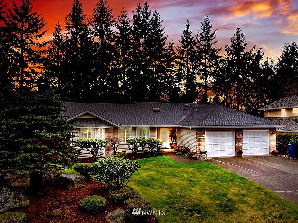 Tranquility awaits w/ a backyard up against Pioneer Trails' forever Greenbelt! Beautifully maintained Autumn Meadow's rambler on a premium lot is right across from HOA park - this neighborhood is sure to check all the boxes. Enjoy spacious living room overlooking a stunningly landscaped front yard. The large kitchen flows into the family room w/ a brick fireplace. Spacious formal dining room with coffered ceiling is perfect for entertaining. Central heat and ceiling fans will ensure you're comfortable, all year long. Serene backyard is fenced with a sizeable patio backing the greenbelt providing additional privacy. Cedar Siding + a 50-year roof. HOA trails lead to parks, private lakes, playfields & sport courts. 10 min to I-5 & Mill Creek.