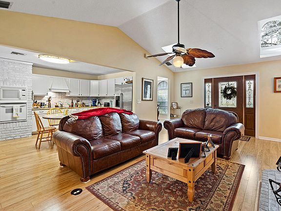 This is a completely updated 4 bedroom 2 bath pool home with a giant detached garage. The home sits on fully manicured 1.15 acre lot which is full fenced. The home also features two drive ways off of the paved privet road. The pool area is like your own oasis in the woods! The home has a new roof and A/C as well.This home is a must see!