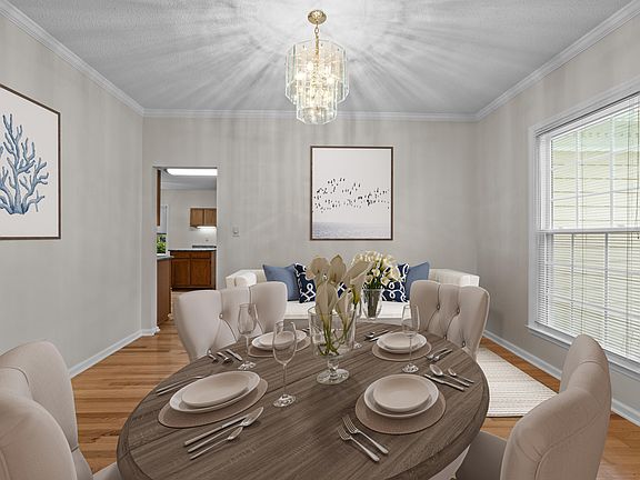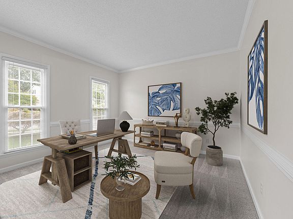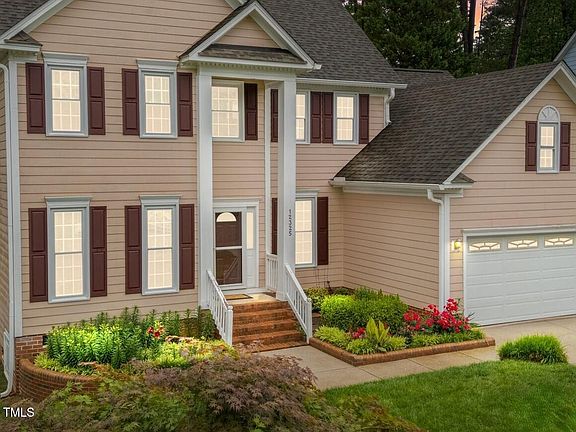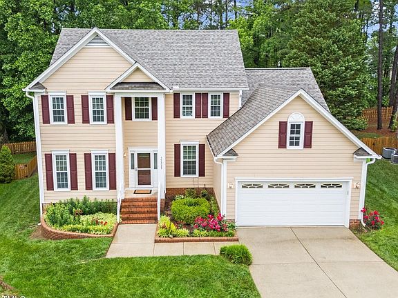New Listing! 12325 Amoretto Way, Raleigh, NC - Downs at Harrington Grove Welcome home to this beautifully maintained 4-bedroom, 2.5-bath home with 2,410 square feet, a 2-car garage, and situated on a .19-acre homesite with absolutely stunning landscaping! Step inside to a welcoming foyer with hardwood floors that flow into the formal dining room with crown molding. The spacious kitchen features natural stained cabinetry, granite countertops, a breakfast bar, built-in pantry cabinet, center island, built-in desk with under-cabinet lighting, and a sunny breakfast nook overlooking the private, tree-lined backyard. The kitchen opens to a vaulted family room with a cozy wood burning fireplace, marble surround, and a custom painted mantel with dentil trim detail. The first-floor owner's suite offers vaulted ceilings, a ceiling fan with light, and an en-suite bath with double vanity, granite countertops, chrome fixtures, soaking tub, separate shower, private water closet, and a large walk-in closet. A first-floor home office just off the foyer includes crown molding and chair-rail accents. Upstairs you'll find three generously sized bedrooms, a full bath, and an unfinished walk-in storage space—ideal for extra storage or future expansion. Relax or entertain on the rear deck overlooking the private wooded backyard. Don't let this opportunity pass you by, schedule a private tour today!