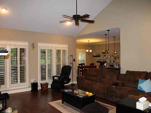 Custom split floor plan with bonus room above the garage. Amenities include plantation shutters, whole house generator, cathedral ceiling in the living room along with a gas log FP, 9ft ceilings throughout, recessed lighting inside and outside, granite counter-tops in the kitchen along with an island bar, cased windows and doors, wood flooring in the living room and dining room, ceramic tile in all wet areas, box ceiling in the master bedroom and so much more!!