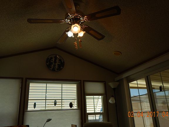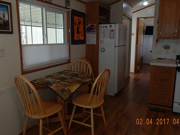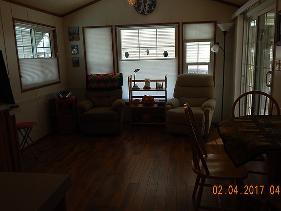 PRICE DROP!! Owner motivated! This is a Cavco Park Model with Hardy Plank siding, dbl. pane vinyl thermal windows. The unit is VERY clean and is fully equipped, ready for it's new owner. It also has a wired 8x8 shed, screened area, and off street parking. (Dues are paid yearly not monthly.) Lot sq. ft. is aprx.