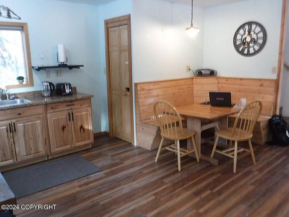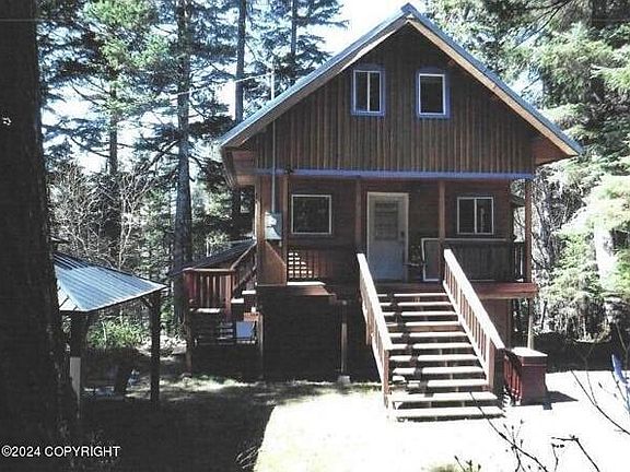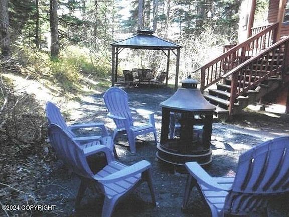 Charming cabin tucked in a quiet, wooded neighborhood less than 15 minutes away from downtown Seward. Beautiful mountain views! Lots of windows to bring in tons of natural light on both floors. Main floor is open and cozy. Built-in seating in the dining area. Large primary bedroom upstairs. Property can only be sold cash or recreational loan with 30% down. No owner financing.are outside. Complete remodel of the cabin began in 2018 and continued on through 2023. Property also features a gazebo and a fire pit!