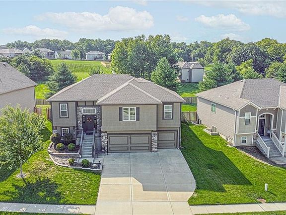 Very open remarkable split entry, inviting floor plan which flows comfortably through an abundance of natural light. Perfect Kitchen with granite countertops, stainless steel appliances huge Walkin pantry, main floor laundry. Huge master suite, finished lower level, oversized 3 car garage, with lots of parking space, large private back yard, completely fenced owned by the owner, trees and an open view of green space behind the house. Oversized covered deck. Located in beautiful Woodland Creek, Peaceful wooded surrounded by green-space. This location is a well-kept secret, feel like you are in a secluded country community with all the amenities of city life. Smithville Triple (AAA) school district, great access to I-435, KC international airport 15 minutes, famous Zona Rosa 15 minutes