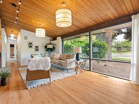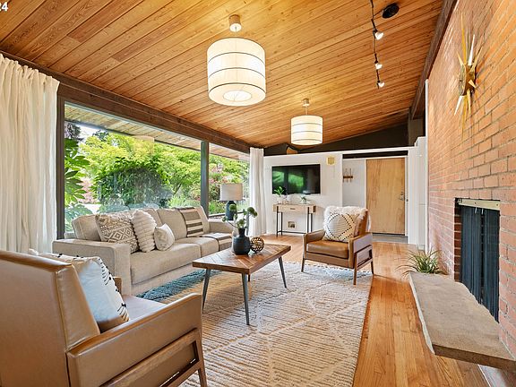 Designer - Mid Century - Cedar Hills home built in 1955. Timeless, Rummer - like architecture yet updated with modern amenities. Small but striking, the house is clad with eye catching vertical grain clear cedar siding. Exposed post and beam construction with vaulted tongue and grove wood ceilings are found throughout the entire home. A floor to ceiling wood burning fireplace is the focal point and allows for fireside entertaining in both the living and dining rooms. Originally built as a 3 bedroom the open the floorplan offers many configurations. The property faces South with an expansive wall to wall picture window filling the living room with light. Built with a true floating ceiling, the home lives much larger than numbers suggest. Sliding doors access a concrete patio for indoor/outdoor dining. Situated on nearly a ¼ acre lot the yard is ready for your vision, grass, planter beds, a true garden, the options are endless. Inside, the Scandinavian minimalist kitchen is smartly laid out with ample storage. There is no lack of space in the remodeled bathroom which features a walk-in shower with glass surround, and heated tile floors. A few modern amenities include new wall mounted efficient heating and AC units, PEX piping, tankless water heater, re-wired electrical, new interior paint, and new carpet. Located just a few streets from Commonwealth Park, Cedar Hills Park, Cedar Hills Crossing and easy access to Hwy 26. Truly a 2-owner home, magazine cool and ready to be admired.
