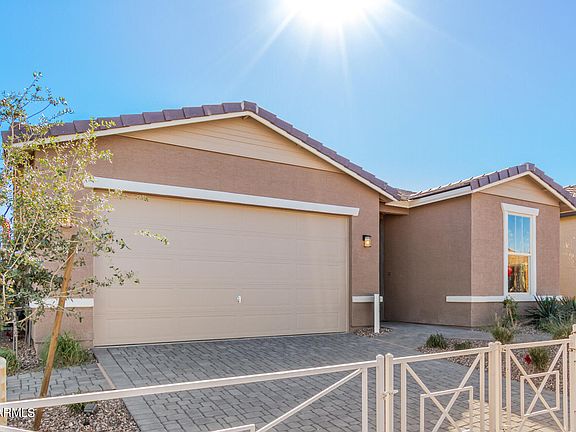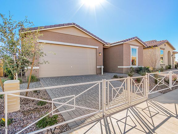 Designed for entertaining, this ranch-style Brand New model home offers airy 9' ceilings, 12'' x 24'' tile flooring, open dining and great rooms and an impressive kitchen featuring 42'' upper cabinets with slate finish, quartz countertops, a center island, a walk-in pantry and stainless-steel appliances, including a gas range, microwave, dishwasher AND refrigerator. Other highlights include a convenient tech center with built in cabinetry, a private study, a teen room, two secondary bedrooms with a shared bath boasting dual vanities and quartz countertops and a lavish owner's suite boasting an oversized walk-in closet and attached bath with quartz countertops and dual vanities. A central laundry with cabinetry, relaxing covered patio and 2-car garage completes the home. Includes sophisticated two-tone interior paint, ceiling fans and front and spectacular backyard landscaping. which includes a stone water feature