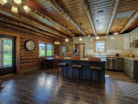 Where to start!! This Creekside property has 2 handcrafted log homes the Main House and the Bunkhouse (guest house), and both face Box Elder Creek. The actual age of the buildings is not clear, but neighborhood word is the Main House was built in the late 60s to early 70s and the Bunkhouse in the late 1950s. The current owners began renovations in 2002. Both homes have been cleaned, re-chinked, stain/sealed, foam insulated steel roofs added, and all windows replaced. A new well was drilled in 2005 and new septic system installed in 2009. On the first floor of the Main house is the kitchen, living room area, master bedroom with walk in closet, office/second bedroom, and a new bathroom. Kitchen was renovated in 2013 and includes quality cabinets with soft-close doors, drawers and slide out shelves, a large bar style island with cooktop, French door stainless steel refrigerator, dishwasher, oven and more. To Addendum