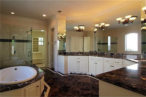 Fabulous 2010 construction in Memorial offers easy luxury living. 5 B/R w/ 2 Masters (1 up,1 down)w/ elegant baths & oversized closets. Flex rm off 1 B/R (up)w/ ensuite bath welcomes guests, mother in law. Media Rm w/wet bar up. Gameroom w/area for gaming tables up. Island kitchen, butlers pantry, brkfast bar, gas range, dbl ovens. Study down. Owners added hardwood floors in all living areas & B/Rs. All counters are stone. 3 car tandem garage. 2 covered patios overlook low maintenance yard.