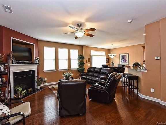 Loaded in Stone Creek Ranch! Features include wood and ceramic tile flooring on main, granite, tile back-splash,stainless appliances and 42' cabinetry in kitchen, gas log fireplace in great room, computer niche on upper level, spacious master with tray ceiling and large walk in closet, dual vanity and separate tub/shower in master bath, and open back yard area with patio. Fridge, washer and dryer included!! Community features pool, club house and green areas. Ardrey Kell High School assignment!