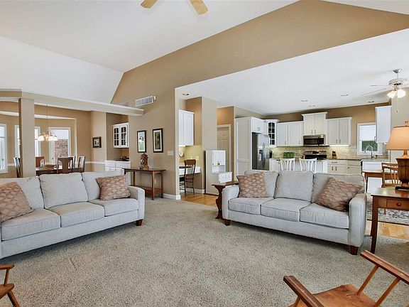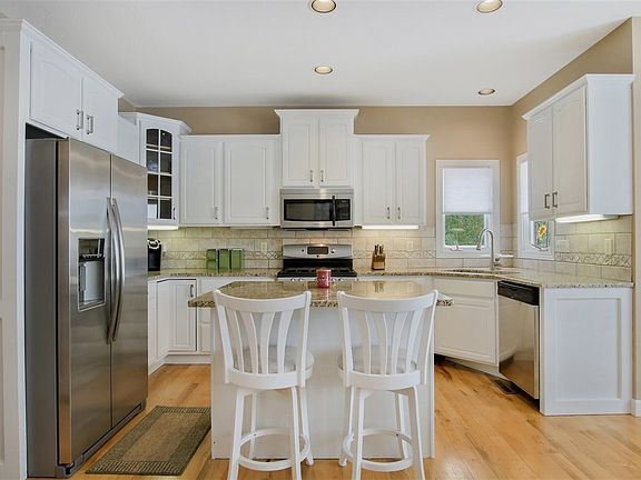 Gorgeous 4 bed 3 bath home with an updated kitchen on a spacious lot in Woodland Lakes Estates! As you walk into the home you are greeted with an open concept floor plan and vaulted ceilings with an amazing view to the beautiful back yard. The living room, dining room and kitchen woodwork and built in storage is all freshly painted white. Formal dining room with built in hutch perfect for entertaining! The kitchen has new granite countertops and backsplash and beautiful hardwood floors with an extra dining area in the kitchen plus a kitchen island great for food prep. The living room features gorgeous white built in cabinets and a cozy fireplace. The master bedroom on the main floor has access to the covered deck, it would be a great place to drink your morning coffee and enjoy the view! The deck is southern facing so you don't have to worry about hot evenings on the porch! The master bathroom has two sinks, a whirlpool tub and a separate shower plus a walk in closet. The spacious walk out basement living room features a fireplace, two bedrooms plus a full bath and storage space. Roof is 2018, water heater is 2015, HVAC is 2018. Not to mention the 3 car oversized garage with built in overhead storage and insulated garage doors! You do not want to miss your opportunity to own this amazing home. Call today for a private showing!