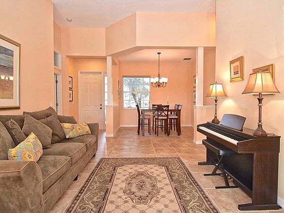 Welcome to this gorgeously updated "Fairfax"? in sought-after GreyHawk Landing! With over 2200sf of living space, 4 bedrooms, 3 baths and a pool situated on a beautiful preserve pond, it will be easy to call this "Home." When you walk in, you'll immediately notice volume ceilings, warm tones, upgraded 18" ceramic tile, and an amazingly serene view of the sparkling pool and nature pond beyond. The kitchen is the perfect centerpiece with stainless appliances, gas stove, stone counter tops, 42" crowned clean-finish cabinets, and designer pendants over the breakfast bar. In the owners' retreat, you'll find private lanai access, laminate flooring, separate sinks, garden tub and walk-in shower. All bedrooms and bathrooms have just been expertly made over with fresh paint, new light fixtures, new carpet and more. When you're ready to relax or entertain, head out to the spacious, screened lanai to enjoy the fresh pool and breathtaking views. What's more, this home is being offered with a 1-year home buyers' warranty. GreyHawk Landing is a resort-like gated community with fun for all interests: 2 community pools, clubhouse, fitness center, tennis/pickle-ball courts, ball fields, fishing pier, over 2 miles of nature trails and more!
