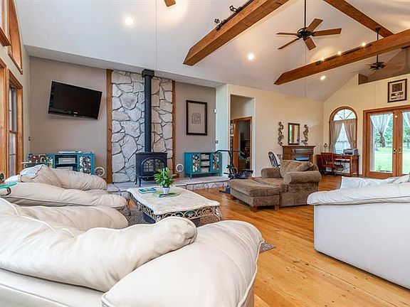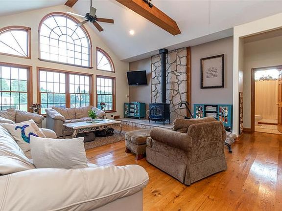 A MUST SEE- Immaculate property inside and out. 19.3 acre Horse or cattle farm - fenced and cross fenced. Over 2700 finished Sq Ft, 3 Bedrooms, 2.5 Baths, Large Master En-suite, 2 story Windows tall in LR, 6'' Oak flooring, oak doors and trim, Granite Kitchen and Bath counter tops, vaulted ceilings, Bonus Room above garage, 18' X 49' Deck with Hot Tub and Kiddie Pool, overlooking 1 acre stocked pond with dock, shelter house, water and electric. 40' X 104' Barn, could have up to 8 stalls, man cave, concrete floor, water and Electric. 3 Sided hay barn, garden shed, fenced backyard, 2 car oversized attached garage, covered front w porch-stamped concrete, Manicured Lawn and beautiful landscaping.