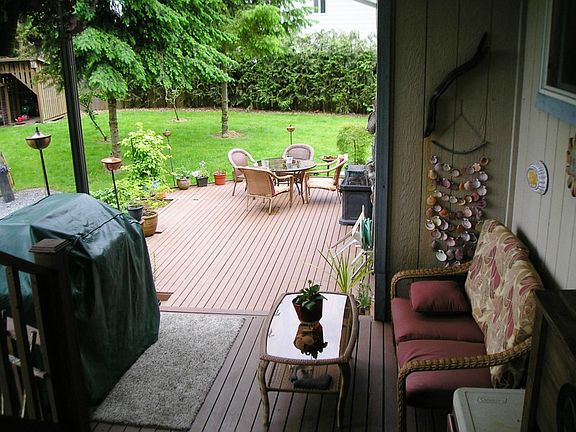 Tranquil setting on a high bank,60ft lake front lot in Rainbow Springs gated neighborhood! This 2080 sq ft(nonconforming) 1998, immaculate split level with a lot to offer. MIL unit on lower level equipped with full kitchen, tiled bathroom & shower, 5 bedroom (2 nonconforming, but nice) W/D & large living area w/ its own entrance (2 car garage converted MIL). Main home offers; mountain view (Pilchuck), RV/Boat/toy & extra parking, large yard,3-tiered deck, fruit trees, laminate flooring, 2 bedrooms on upper story, bath off master & great room floorplan to include vaulted ceilings. Dues $220/yr.