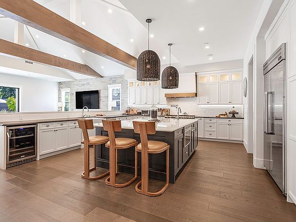Accepting Backup Offers, contact Listing Agent for Private Appointment. Entering this stunning single-story Valley Village home is like stepping inside the pages of a design magazine. Professionally designed with a mix of modern and traditional features, it's dotted with striking architectural and designer details and has even been featured in multiple publications. 15-foot ceilings with exposed beams span the open plan great room, which includes a spacious chefs kitchen kitted out with top-line appliances and a family room that seamlessly connects to a covered outdoor patio with a fireplace thanks to a wall of glass doors that pocket away. Theres an impeccably designed formal dining room and living room, beautiful wine storage/display space, and 4 generous bedrooms. The owner's suite is particularly luxurious, with a fireplace, sitting area, custom walk-in closet and a master bath with a large shower & soaking tub. Outside, relax in the pool or spa, plus entertain and dine al fresco near the built-in BBQ you won't want to leave.