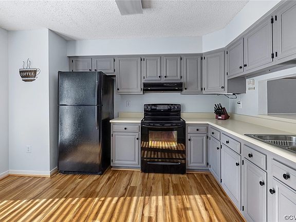 This charming townhome is nestled in a quiet community with great walking paths. It is in a convenient location and falls in the Godwin school district. The unit is bright and open with a floor plan that has great flow. The first floor has a great room with dining and living areas. The dining area has a chandelier and the living area has a wood burning fireplace with raised hearth and ceiling fan/light fixture. The kitchen includes a pass through opening with bar seating and a French door to the front deck area. The first floor is complete with vinyl plank flooring throughout, powder room, pantry and oversized sliders to the rear yard. Upstairs you'll find two bedrooms with ample closet space and a Jack and Jill bath with tub/shower and double vanity. Side by side laundry is upstairs with a hall linen closet. Enjoy the privacy fenced rear yard and deck. The Hardi plank siding installed by HOA is approximately one year old, unit electric hot water heater 2020. Fireplace, chimney, flue and shed convey as is. Microwave in kitchen cupboard can convey. Don't miss out, these units rarely come available.