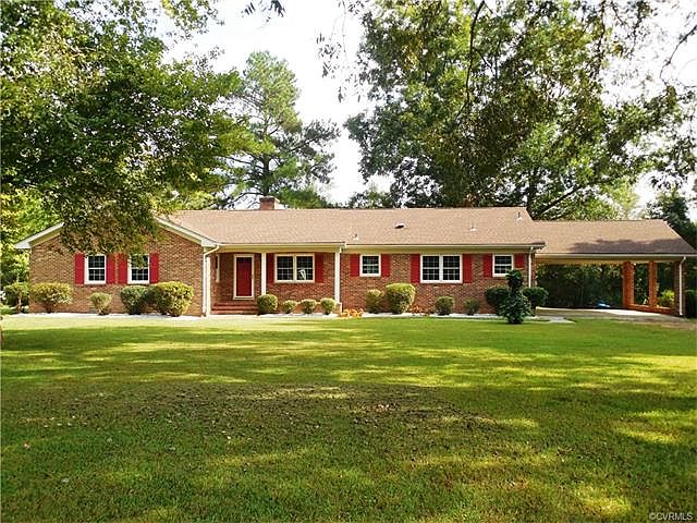 MUST SEE...BRICK RANCH IN EXCEPTIONAL CONDITION SITUATED ON 4.4 VERY PRIVATE ACRES - ATTACHED 2-CAR CARPORT - NEW SCREENED OCTAGON GAZEBO - 17 x 8 SCREENED REAR PORCH - 12 x 12 SHED W/LEAN - WALK-UP ATTIC - ALL NEW HVAC, HWH, WATER SOFTNER, APPLIANCES, WINDOWS, FLOORS, ROOF 5 YRS OLD - BRICK WOODBURNING FP - 30 MINUTES TO COLONIAL HEIGHTS - SERENITY AT ITS BEST - CALL FOR MORE DETAILS