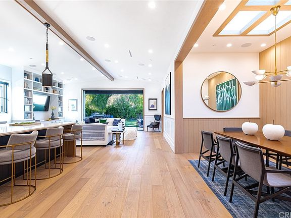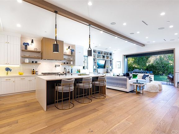 Valley Village one story stunner built by the renowned Hunter Homes! This property provides all things luxury with contrast exterior exuding a bold unique look that carries throughout the home. Wide-plank oak flooring, custom paneling, designer light fixtures and finishes are just a few features that make this home un comparable. 4 Spacious bedrooms and 4 total bathrooms make this home perfect for any family, big or small. Entering through the skylit foyer, a mudroom and laundry room to your left, two car garage, and powder room to your right, with all 3 bedrooms tucked away down the hall. Open concept living space features Chefs kitchen, skylit dining area, and living room all in one excellent entertainers environment. Kitchen features custom cabinetry, overlay refrigerator, high end fixtures, and large island with seating. Living space opens to a large backyard through floor to ceiling glass sliding doors revealing an entertainers yard hosting covered dining/entertainment space, built-in BBQ, pool and spa with water feature, vast grass space, and immense privacy with its lush landscaping. Master suite with direct access and view to your yard hosts his and her closets, and luxurious master bath with a walk-in shower, soaking tub, double vanity, and privacy door. This home was exquisitely built, and in combination with all the amenities it hosts it is a must see!