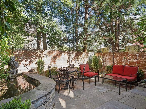OPEN HOUSE CANCELLED. Welcome to this quintessential Georgetown home, nestled among the most charming townhouses in the East Village. Brimming with original details and character, this residence boasts high ceilings, spacious rooms, original hardwood floors, and abundant natural light from three sides. The semi-detached home offers a gated path to reach the front door - allowing for additional privacy from the sidewalks and street. Recent updates elevate its appeal, including a newer cooling system, a recently relined chimney, and a tasteful kitchen refresh. A newly installed lighting system enhances the home's warm and inviting ambiance. The main level features a gracious living room with built-ins, a cozy dining room with a wood burning fireplace, and an eat-in kitchen that opens to a private rear patio. Upstairs, the primary suite offers plentiful closet space and a recently updated bathroom featuring luxurious Waterworks fixtures. A second generous bedroom and a hall bathroom complete this level. The private rear patio is an oasis for relaxation or entertaining, complete with a tranquil fountain and fish pond. The lower level provides additional storage space. Don’t miss the opportunity to own a Georgetown gem! Open Sunday April 6th, 1 - 3pm.