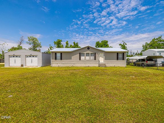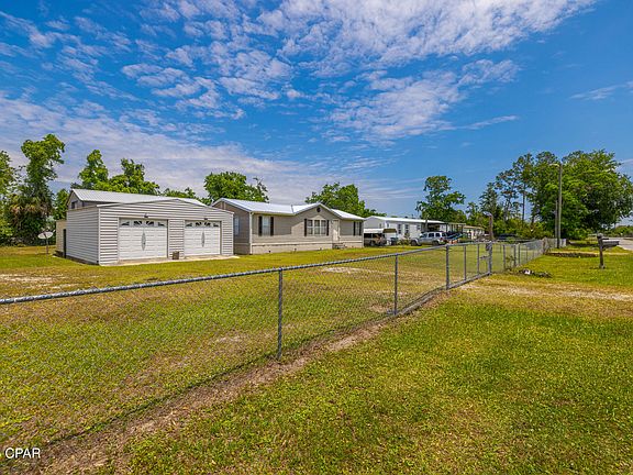 This 22x48 doublewide mobile home with RV garage that sits on a great corner lot with underground drainage pipes—no ditches! From the main electric pole, the utility wire is buried underground to the home.