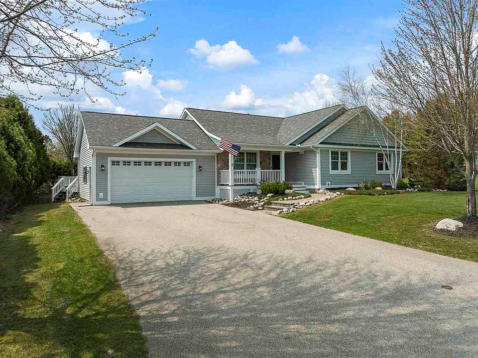 You will feel right at home in this charming house that's centrally located in the city of Petoskey within walking distance to all the schools, shopping and dining. A tucked away almost one acre double lot that abuts Petoskey Public School Property and the Petoskey Community Trail offering sunrise countryside views, privacy, and convenience. Located at the end of a private drive, this home boasts three bedrooms, three full baths, and a finished lower level so there's plenty of room inside and out! The main floor features a spacious kitchen with custom maple cabinets, eat in bar, and dining area that leads to the back deck, a front bonus room that could be used as a den or office, family room, master bedroom and bath with custom shower, as well as two additional bedrooms and a second full bath. The lower level hosts a large family room, additional room that could be used as a fourth bedroom, full bathroom, laundry room, and lots of storage. The attached, oversized, and finished two car garage is heated with canned LED lighting, a newer roof, maintenance free exterior and trim, and both baseboard and mini split systems for heating and cooling. The property includes an additional lot located adjacent to the house with numerous possibilities. This home is move in ready!