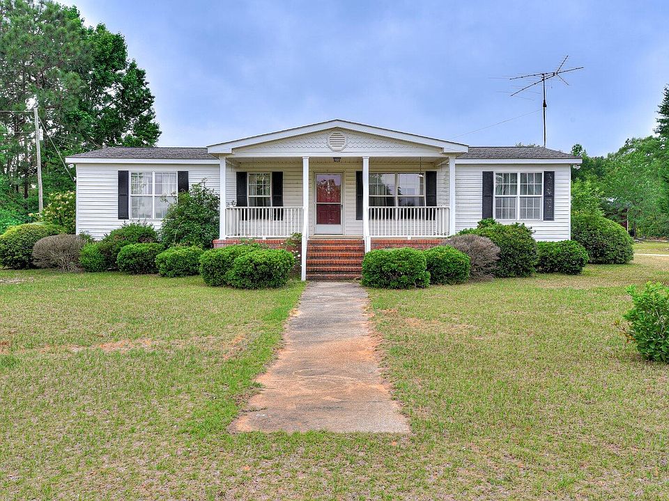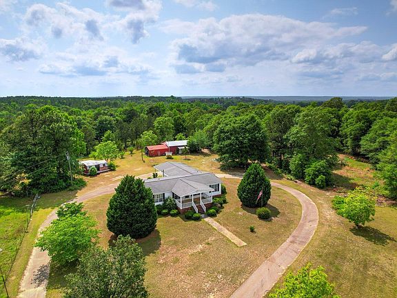 Estate sale! This beautiful property is gated and fenced with a pond, fields, woods....anything you can imagine. Nice home on a permanent foundation with 3 bedrooms, 2 baths, family room, dining, and kitchen. House has a rocking chair front porch and a carport in the back. Numerous storage buildings and barn. Multiple areas with water to run sprinklers for the land.
