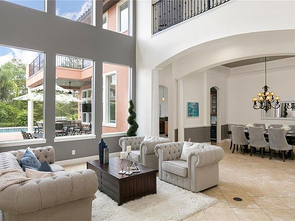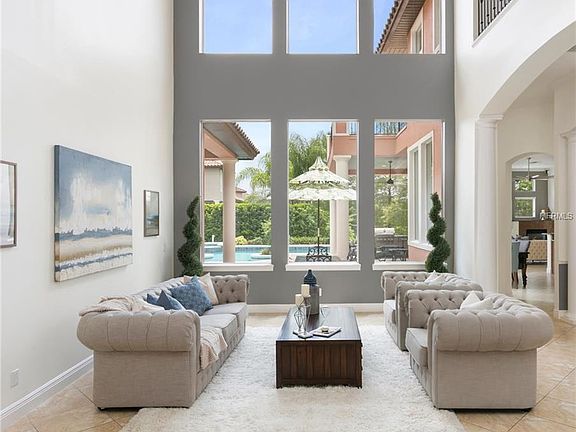 !!! BACK ON MARKET !!!! 05/07/2018 !!!!! STUNNING best describes this Custom Built Mediterranean Style Luxury Home located in a security patrolled gated Windermere Community, and has some of the best schools that Central Florida has to offer. Measuring at 6557 total sqft , three car garage two story Luxury Home will WOW your VIP GUEST. Starting with this amazing floor plan you have the downstairs master bedroom with Brazilian bamboo flooring, two walk-in closets, custom ceramic tiles, custom lighting and chandelier, dual sinks and a second downstairs bedroom. You will be speechless once you enter and see the soaring 30 feet ceilings, gourmet kitchen with high-end stainless steel appliances, 42 inch maple cabinets, natural gas throughout, exotic granite counter tops throughout, stunning custom chandeliers throughout, butler station with wine cooler, gas fire place , four security cameras, energy efficient LED light throughout and new summer kitchen in the patio area. Starting with 7 piece cast aluminum Sunbrella Lounging set and plus 8 piece cast aluminum dinning set with cushions, 55 inch (4k) Samsung Smart TV with built in wifi, custom heated 30,000 gallons salt water pool , heated 10 person therapeutic saltwater spa, new Jandy Pro Series new technology pool pump that you can control from your smart phone, and complete new (never) used summer kitchen. Don't forget to visit the upstairs private 22 x 34 feet balcony and watch the stars and over look the pool and patio area.
