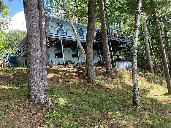 Charming 4 bedroom home, set up as a duplex, on Little Arbor Vitae Lake. Plenty of space for your toy storage in the detached garage, right across the street with 4 stalls and workshop on the side. Roof, decks, & septic are recently newer. Enjoy the comfort of the lakeside views across the bay from the deck or lakeside firepit area. Small storage shed is also lakeside for the fishing poles and extra storage. Each unit has 2 bedrooms, bath and laundry. Little Arbor Vitae lake offers 480 acres of true fun in the sun and has plentiful musky, walleye and panfish. You typically can't find a place that sits this close to the waters edge, so here is a true treat.