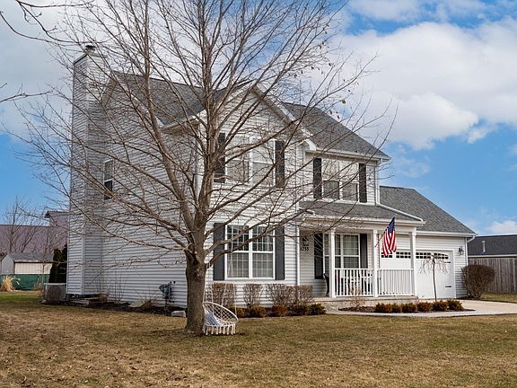 LOTS of updates since the summer of 2020! New garage door, stamped concrete walkway and landscaping added great curb appeal! New laminate flooring throughout the entire main level in 2021. The main floor includes an office, dining room, half bath, kitchen and living room with wood burning fireplace. The kitchen has been updated to include granite counters, new sink, new dishwasher, new backsplash, new lighting and the cabinets have been painted. Upper level features a large primary bedroom with both a tub and a shower, dual sinks and walk-in closet as well as two more bedrooms and a full guest bathroom. Lower level is finished for extra living space and has an egress window and plenty of storage. New furnace and A/C in September of 2020. The backyard improvements include a new deck plus a shade awning! The stamped concrete patio creates extra space for entertaining. Trees have been added along the west and south side for privacy and the yard is partially fenced in. All this within close proximity to Horizon Park, Central Michigan University, Mt. Pleasant High School, restaurants and shopping!