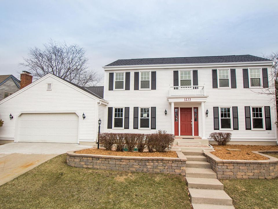 Feature rich colonial has plenty of well-appointed space & finishes. Brand new kitchen features: Cherry cabinets, granite countertops, stainless steel appliances, breakfast bar & custom backsplash. The huge family room features a modern fireplace & is open to the kitchen. Formal living room connects to the family room w/French doors. Formal dining, 1st floor laundry, separate den complete the main floor. Upstairs has 4 bedrooms, the master suite has a custom bathroom with walk-in double shower & double sink. The basement has room to entertain w/a large finished area. Great yard & deck.