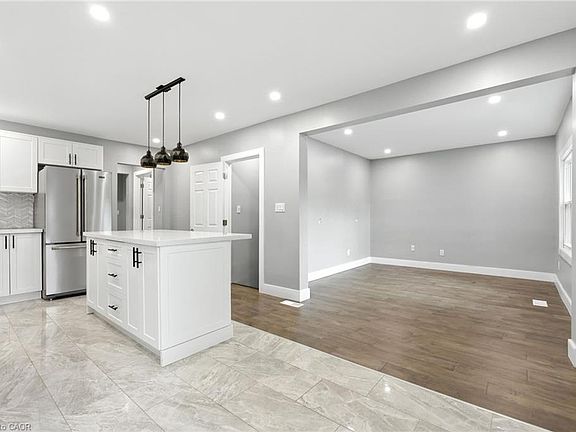 Welcoming front porchLarge windowNatural lightEat-in kitchenModern finishesLarge centre islandChic herringbone style backsplash
