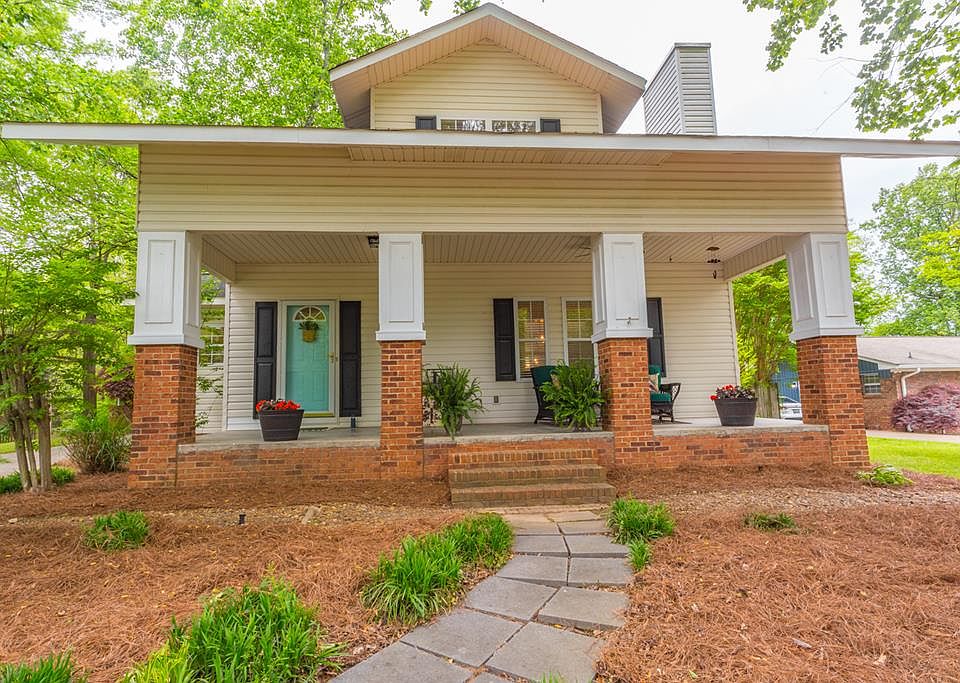 INVITING COTTAGE-STYLE HOME NEAR THE CITY! The welcoming front porch leads you inside this beautiful 3 bedroom/2.5 bath with classic features! Located downstairs is a large living room with wood-burning brick fireplace, shiplap accents, and elegant hardwood floors. Spacious dining room with large windows. Large kitchen with farmhouse sink, open shelving, gas oven/cooktop and breakfast nook. An office space and laundry room with brick-tiled floor are also located on the main floor. Upstairs features the master bedroom and large master bath with separate shower and tub, 2 additional bedrooms and another full bath. Large deck out back for grilling and a level back yard! All at a great location convenient to the city!