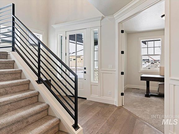 The Barber by Venta Homes! A sweeping 2 story entrance welcomes you in while the kitchen & oversized great room are tucked privately out of sight. The memorable factor is at work here: an oversized 3rd bay garage (34' in length with a 10' high door, 1200sf), open banister staircase, french doors, extensive molding/trim work, ceiling details & luxurious primary suite. This home could live like a single-level home with both primary & laundry on main. Upstairs boasts good sized bedrooms & closets. Large bonus room. Venta Homes is a Boise Born Building Company committed to providing amenity rich model homes without the hassle of a custom build. The homes in Serenity Springs are HERS rated & thoughtfully built. They include unique amenities like touch faucet, hardwood in the great room & under cabinet lighting in the kitchen. Home will be move in ready with full fencing & landscaping. Home estimated to be completed 9/22/2022. Photos are similar. BTVAI
