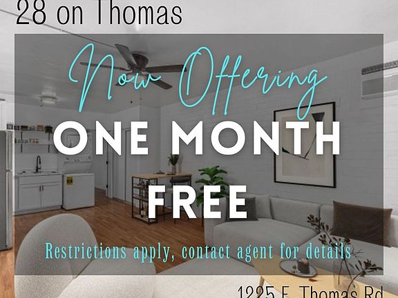 Welcome to 28 on Thomas, a gated community in close proximity to everything you are looking for while living in Phoenix! Unit 23 is fully renovated with stainless appliance, luxury vinyl plank flooring, upgraded fixtures and washer and dryer included. The community comes equipped with 2 on-site laundry facilities open 24 hours a day, covered parking behind the building so it's not right off the street, and coded pedestrian entry gates. The community offers a nice courtyard with tall trees to enjoy your morning cup of coffee or take a stroll with your furry friend. Situated in Central Phoenix, just off of 12th Street and Thomas, you'll be near all of your favorite hot spots! Swing by Barrio Cafe or Taco Guild for some awesome Mexican food, Ocotillo if you enjoy seasonal American cuisine or The Coronado Phoenix for some amazing Vegan meals. Relax after a long day of work at The Main Ingredient Ale House & Cafe or stop by Tangible Wellness Fitness Center or Orangetheory Fitness for a good workout! Expand your horizons and enjoy a day at the Heard Museum, Phoenix Art Museum, Enchanted Island Amusement Park or Japanese Friendship Garden. The property is ideally located within minutes to a light rail station, easy access to the Piestewa Freeway, Interstate 10 and Interstate 17. You can truly enjoy the central Phoenix experience here at 28 on Thomas. 28 on Thomas does not offer AirBnB styled rentals, only full time renters inquire. Contact us today to schedule a tour and see what awaits with your new home! Discover your New Home with Quartr Living! Zero Deposit Community*: Enjoy the convenience of moving in without the hassle of a traditional security deposit. Apply today to see if you qualify for this exclusive program! Pets Welcome*: At our communities*, we've partnered with Pet Screening to make pet ownership more inclusive. With this program, traditional breed restrictions are no longer an issue, ensuring all furry friends are welcome! 24-7 Emergency Maintenance: Day or Night, Rain or Shine, our dedicated maintenance team is there to ensure emergency maintenance related items are taken care of! Resident Portal: Our online resident portal makes life easier! You can pay rent, sign lease documents, purchase liability and renters' insurance, message our team, and submit work ordersall in one convenient place. Optional Fees: $15.00 Liability Insurance Coverage $50.00+ Zero Deposit Fee* * For more detailed information on the Zero Deposit program, Pet Screening, and other aspects of your potential new home, visit our website.