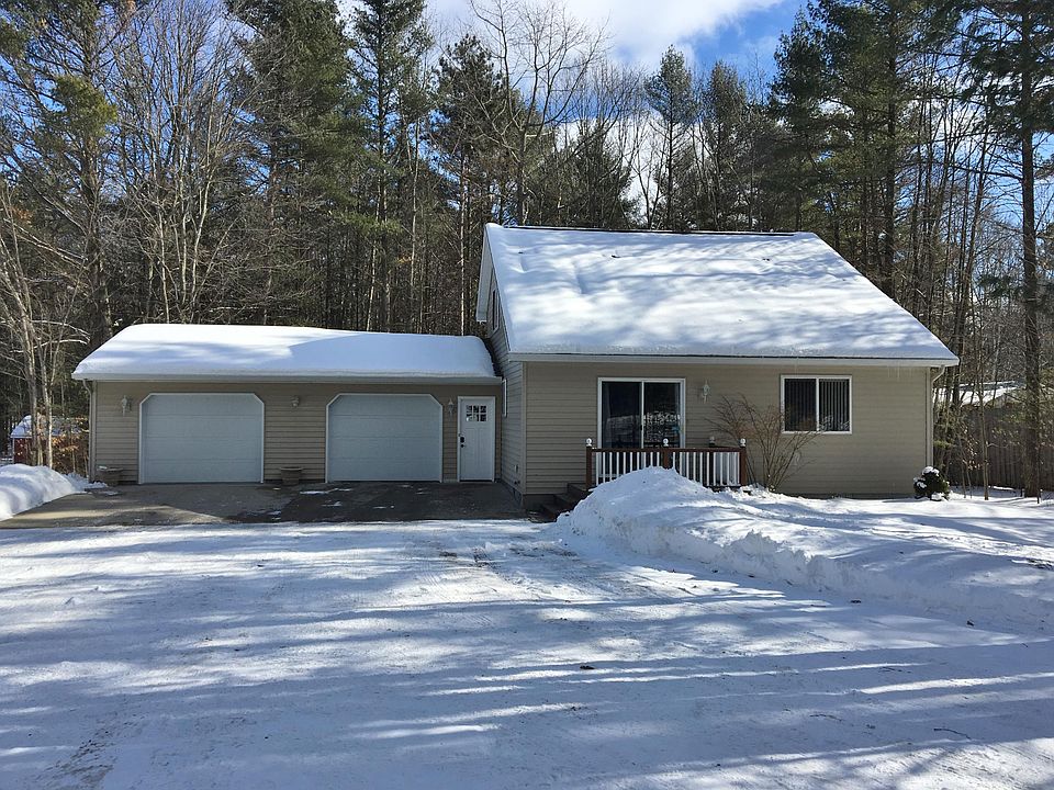 This wonderful Saltbox style home is nestled on a lovely wooded, fenced lot and sits on a paved road just off of M 32. There is an open living room, dining room and oak kitchen feature a vaulted ceiling. There are three generous size pantries. The microwave and spacious, stainless farmhouse sink were recently installed in 2020. Newer, attractive and durable PVC plank flooring is installed in several rooms. The main level features a large bedroom, a full bathroom, laundry room and a 3 season back porch. Upstairs has a roomy landing, two bedrooms and a 3/4 shower bathroom. This home boasts numerous upgrades, remodeling and has central air. One garage stall has a wall furnace and workshop area. This home is tastefully decorated throughout. A wonderful place to call home!
