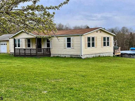 Perfect retreat or full time residence. Property is absolutely surrounded by prime hunting, and ALL township roads are ATV legal! This ranch sits on 1.83 beautiful acres with a front sitting porch and a raised deck stretching across the entire back of the home offers a beautiful view of the surrounding woodlands. Above ground heated saltwater pool is two years old with even newer decking and has been lovingly maintained. Come check out this little slice of heaven with central air and a brand new furnace/heat pump. Vinyl replacement windows. Whole house generator. Detached two car garage has plenty of room for a workshop and is equipped with a 30 amp hookup for the RV.