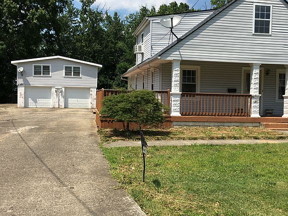Attention investors and savvy buyers!! Great house on large double lot (just under an acre total), with separate 2 BR apartment for extra income! Tons of storage with TWO 3-4 car garages. Updated large kitchen with granite counters, maple and glass front cabinets, and separate dining room. One bedroom downstairs and 2 up, plus 2 additional bonus rooms that could easily be bedrooms. New stainmaster carpet throughout. Jacuzzi tub and ceramic tile in main bathroom. Appliances and washer/dryer to stay. Newer siding and replacement windows throughout. PLUS! A 2 BR, 1 bath, 800sf full apartment above garage. Kitchen, W/D hookups, hardwood floors, private entry, and separate meter. Rents for $500 per month. Sold AS IS. Paint and a little handy work equals instant equity and higher rent!