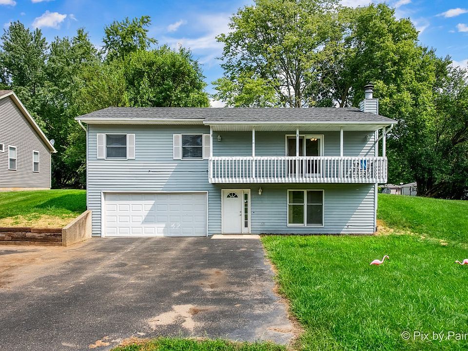 Opportunity is knocking at 1233 Lakewood Drive as your ticket to Lake Holiday living at an affordable price is here! Starting with its incredibly advantageous location - near the campground entrance for an easy in and out of the community, walking distance to the campground, Dog Park, lake access green area with rentable boat piers, sports courts, Walking Path, and more - there's truly no downside! Built in 1990, featuring 3 bedrooms, 2 full baths, an almost .5 acre lot, extra wide asphalt driveway, and well appointed living spaces, this charming Raised Ranch will be sure to check all your boxes! As you step inside, you'll be greeted by a spacious foyer that connects you to the laundry room and garage access as well as the finished lower level that is home to an open family room/bonus space and the 2nd full bathroom. Heading upstairs, you'll take in all the natural light flowing into the generous living room that features a sliding glass door with connection to a sprawling balcony to enjoy your morning coffee on! Off the living room is the eat-in kitchen w/ hardwood floors, dining table space, newer appliances, a pantry closet, and another sliding glass door that leads to a 2 tiered composite deck (approx 4yo) off the home that also steps down onto a concrete patio ideal for Fall bonfires! Back inside and down the hall, you'll find 2 guest bedrooms, and the primary suite with a walk-in closet that conveniently shares a full bath with separate vanities and a pocket door for separation from the hallway side of this bathroom. All furnishings currently in the home can transfer with the home sale at no additional cost, AND the Seller is offering a $2,500 flooring credit to accommodate new carpeting of the your choosing post closing! From approx 2012-present all major mechanicals/components of the home have been replaced and/or maintained including; roof, furnace, A/C, garage door, water heater, washer/dryer, kitchen appliances, & more. Time to take the leap, and move to Lake Holiday to "Be On Vacation Every Day of the Year"!