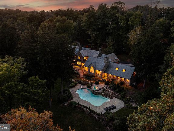 Breathtaking gated estate and restored Walter Durham masterpiece. "Braebank” is a historic and architectural treasure renovated completely to the highest luxury standards. Perched atop 6.67 sweeping acres of utter privacy and lush views, the home’s quintessential fieldstone exterior is finished with slate roof, copper gutters and wrap-around flagstone terraces that embrace the tranquil setting at every turn. The stunning grounds are punctuated by a trickling creek, gazebo and a glistening pool with spa and waterfall positioned to overlook the sun-filled views. Tucked on a quiet road, shared by some of the Main Line’s finest estates, pull up to the iron privacy gates completed with gas lanterns and down to a motor court lined with original stone walls and ending at a five car garage. The exquisite and timeless exterior echoes the breathtaking interior. No stone was left unturned in raising this timeless treasure to the finest modern day standards. Walk through the classic original door to a foyer that warms you with original wide-plank hardwood flooring. The elegance of the home is immediately showcased by a curved staircase framed by a striking and pristine Schoenbeck crystal chandelier. From the foyer, step down to a living room with soaring ceiling heights, original built-ins and molding, fireplace, glorious light with exposure on three sides and french doors to the grounds. A Mahogany office is completed with exquisite millwork, fireplace, wrap-around built in shelves and also steps out to the terrace. Both the Living Room and Study are quintessential Walter Durham features. A grand dining room is large enough to fit the extended family. It is finished with beautiful molding and overlooks the rolling hills with a large bay window. The family room could have been plucked from the pages of a design magazine with a dramatic cathedral ceiling, exposed trusses, floor to ceiling stone mantel and Palladian window overlooking the glimmering pool and grounds. A flowy, open layout that is ever sought after but hard to achieve in these elegant old stone houses connect this exquisite family room to a spectacular kitchen and breakfast room space. Also finished with a vaulted ceiling, the breakfast room is drenched with light from skylights and glass paneled double doors to the terrace. THe kitchen is fit for a gourmet with a large center island and high-end stainless-steel appliances. Custom white shaker cabinets and quartz countertops finish this kitchen with the utmost style and taste. Upstairs, the primary suite boasts another vaulted ceiling, an extremely rare feature for a home of this era. A large walk-in closet awaits the custom finishes of the Buyer and the primary bathroom has deep soaking tub, large tile shower with frameless glass door and double vanities. A private terrace completes this bespoke primary suite. Two additional bedrooms both with renovated ensuite bathrooms are in close proximity to the Primary. Further down the hallway, two additional bedrooms share a jack and jill bathroom and a cozy homework space. Another standout feature, the second floor is finished with a warm and light filled bonus room, which has its own entrance to the outside. Perfect for an upstairs family room, au-pair space or fancy expanded office. Off the kitchen, a finished basement boasts a full bathroom and room enough for gym and a theater and additional hangout space. This grand project has been completed masterfully by a reputable Main Line builder who specializes in historic renovations. Utterly tranquil and yet centrally located with close access to major roadways, shops, train lines. Award winning Lower Merion School District. Includes partial house generator.