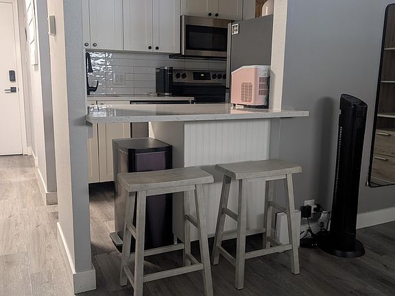 Minimum lease term of 3 months. Monthly lease of $1,500 includes all utilities, wi-fi, and designated off-street parking spot. Required background and soft credit check required at tenants expense.