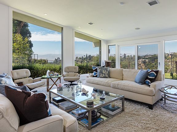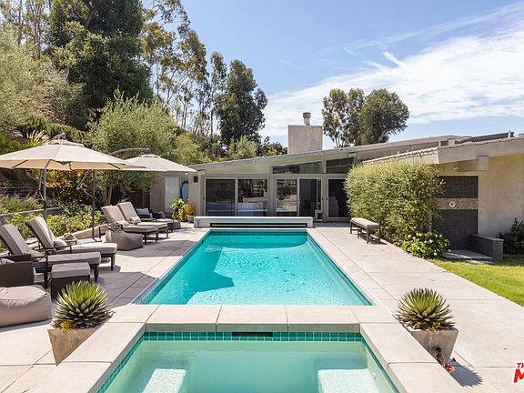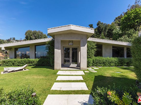 Once the home of legendary L.A. architect & modernist pioneer A. Quincy Jones; this contemporary masterpiece is nestled into the Santa Monica Mountains high above Sunset Blvd. Experience the serene feeling of living in Santa Barbara while only 3 minutes away from Brentwood Canyon. Sited on over 2 acres of land with sweeping city to ocean views this warm one-story contemporary is a place to find peace & tranquility. Inside floor-to-ceiling windows create a light, bright space; with an open floor plan the living & dining room are ideal for entertaining along with a large gourmet chef's kitchen. The Large master w/fireplace is complimented by 3 additional suites & maid's quarters. Stunning grounds surrounding the home with oversized yard, generous swimmers pool and lush landscaping. The seamless integration of indoor/outdoor living creates a space ideal for the ultimate California lifestyle at this stylish hillside sanctuary.