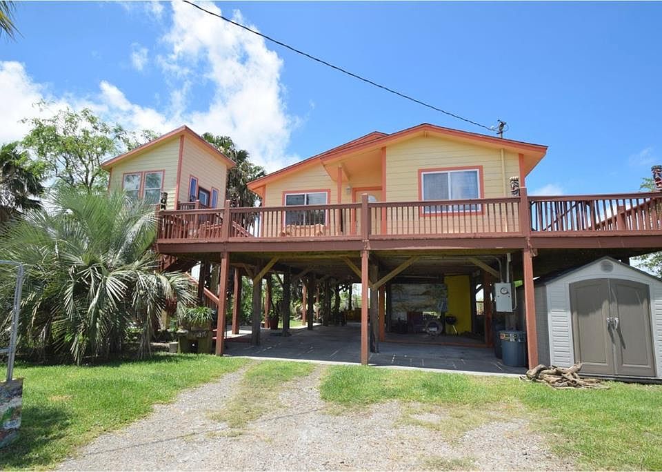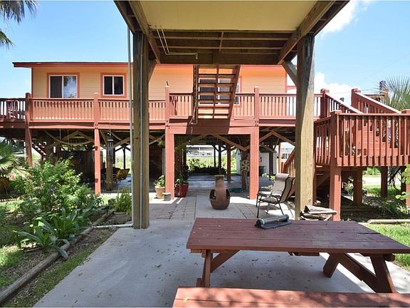 A cute and well maintained 3 bed, 1 bath home located on bayside of Bluewater on O'Neal Rd. Property has 930 s.ft of living area in main building plus there is a separate outside 120 s.ft additional room, currently used as an art studio. Large open living area, kitchen and adjacent breakfast room. Laminate floors throughout. Wrap around decking with large front and rear areas. There are great views across to the Intracoastal Waterway from the rear deck. You will always have beautiful sunsets! Downstairs features a large sitting area underneath the building with large yard area featuring several mature palm trees and flower beds. There is also a sand shower and storage building. The property comes with two additional lots on north side, making a total of 4 lots (0.5 acre area). Yard is fully fenced. Priced to SELL! Come and see this one!