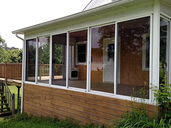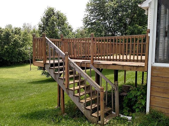 Property is Partially Agent Owned. This is a great little home that has a lot to offer. The kitchen has been upgraded in the past, as has the bathroom on the main level. Living Room has hardwood floors and the 2 bedrooms have carpet over hardwood. Replacement windows have been installed. Nice 3 season porch with propane fireplace. Beautiful Lot with plenty of paved parking. Great area. The Full bath that is in the basement has had the drywall removed. Basement is a walkout that has been studded up in the past for Family Room, Office, Laundry and Additional Bathroom. Appears that some years ago, a basement waterproofing was done. Recent foam insulation on basement walls. Attic has permanent stairs and could be used as a play area or storage. (Not included in square footage). Not many homes come available in this price range that have as nice of an area as this. Large Deck off the back. Come and tour.