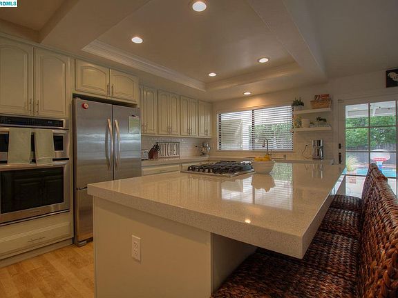 Desirable Dana Farms lge lot with updted kitchn in 2014, quartz counters, gas cooktop, double combo wall oven, oversized pantry storage, large custom island, kitchen overlooking the pool in fenced backyard. Master bath in 2016, mble countertops, dble shower, dble sinks. Lamin, RV pking, pool fence.
