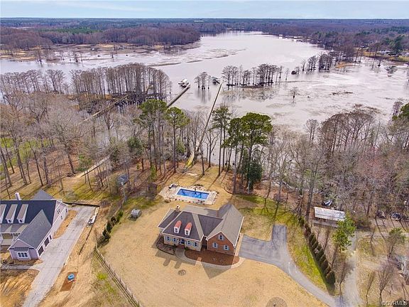 This is a show stopper! A French Country home on the Chickahominy River in Turners Neck Estate (New Kent) on 5 manicured Acres with panoramic views. Beautifully built by Jeff FIsher Construction. Romantic sunset views abound with a solid pier to boat house at deep water. Dream lifestyle with heated and cooled saltwater in-ground pool with fountain and extensive lighting. A split rail grazing pasture for horse lovers. This low maintenance home has a heatilator fireplace and geothermal heating along with central vac and beautifully site finished hardwood floors. Shown by confirmed appointment.