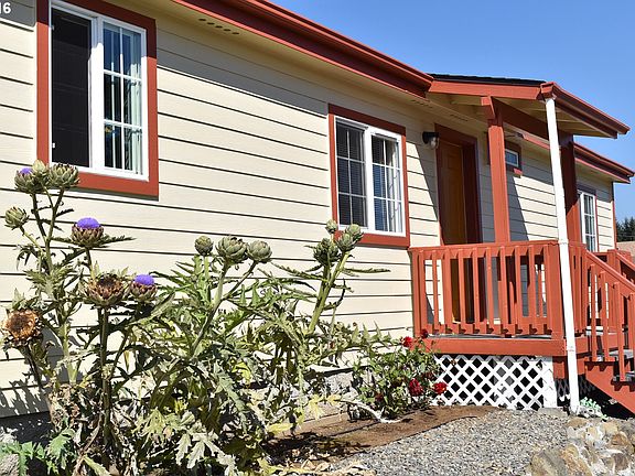 Sweet & happy beach retreat. This home is light & beautifully kept plus has a nice little ocean view from the spacious kitchen & dining area.Open living room w/vaulted ceilings & pellet stove. Hardiplank siding. Freshly painted inside & out. See att. improvement list incl. new frig. Roof new 2012. Trex deck wraps side & rear of home. Nice fence yard w/raised beds. Low maintenance as well. Walk to Mill Beach, Fred Meyer & town.