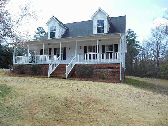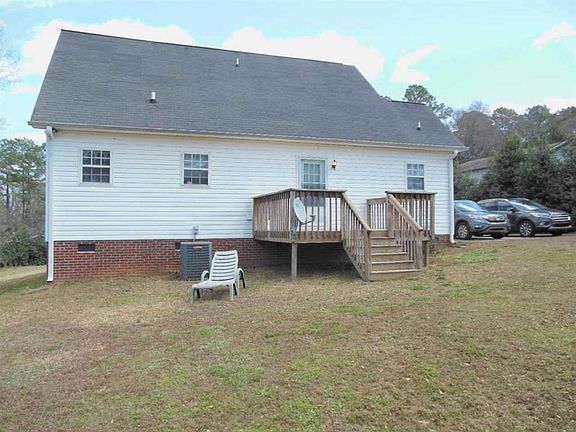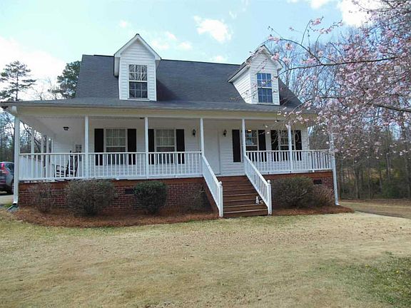Come home to this cozy cape cod. You will love the quint rocking chair wrap around front porch. The home has 3 bedrooms and 2.5. The kitchen is spacious and has beautiful oak cabinets,smooth top range and hardwood floors. The den is good size and also has beautiful hardwood floors, formal dinning room .Master on main with on-suite bathroom and walk in closet. Upstairs you will find 2 good size bedroom and full bath. This home offers great out door space with nice deck over looking large private back yard with nice view of woods. Plenty of room for kids to play. All this on .91 acre lot. Very convenient to I-85