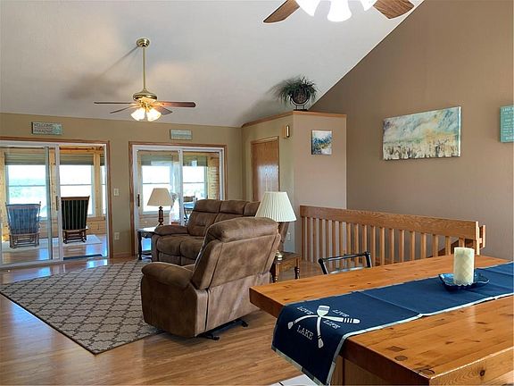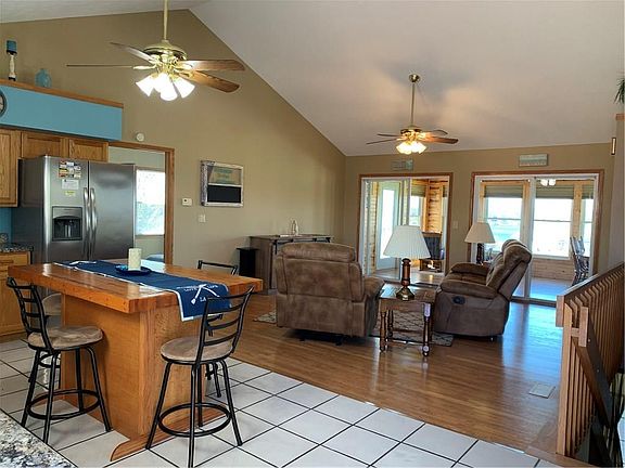 This lake home has everything you need with plenty of entertaining space! Large corner lot off-water home with absolutely beautiful views of the lake & sunsets. The beach & boat ramp are so very close! All furniture & wall decor are included in this open floor plan home with over 2,000 sq. ft. of finish. Spacious & open kitchen with floating island, new counter tops, oak cabinetry & newer stainless steel appliances. New three season room with an attached deck that leads to the master also. There is a large lower lever deck, both decks enable you to view the beautiful lake & sunsets. Three bedrooms total, one being the master suite with bath & large walk-in closet. Then 2 bedrooms, a full bath including a washer & dryer and family room in the walkout lower level. Huge 3 car detached garage with plenty of storage for vehicles, boats & lake toys. Another driveway for your RV/Camper hookup or additional parking. Fun in the sun, while making lasting memories with your family & friends.