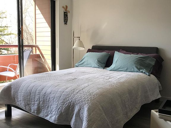 Year lease at $2800 per month and 6 month lease available at $3100 per month. Perfect mountain getaway for a couple or single. Bright, sunny, fully remodeled studio in Aspen. Buttermilk Mountain and forest views. Unit on 3rd floor with nice deck. No detail has been over looked. A comfy queen bed and 42" flat screen TV. The small fully equipped kitchen has all appliances you would expect in a full size home; full size refrigerator, stove, oven, microwave and dishwasher! Non Smokers only. No pets allowed. 1 parking spot with unit. Unit has Comcast digital cable TV and high speed wireless modem. Gorgeous walk in shower and large walk in closet to store everything. Complex has 2 year round outdoor hot tubs and in summer, 2 tennis courts and outdoor swimming pool. *INCLUDES SKI LOCKER AT BASE OF ASPEN MTN ON WINTER SKI LEASE.* 10 minute walk to anywhere in town. Free bus service every 20 minutes, 6am to 2am and free shuttle service every 10 minutes in season from 7am to 5pm. Hiking trail head for Hunter Creek Valley starts directly behind unit. Walking trail along Rio Grande River less than 5 minutes away. Debit card laundry on 1st floor. Lease can be for 6 months at $2850/month or 1 year for $2800/month. Utilities included.