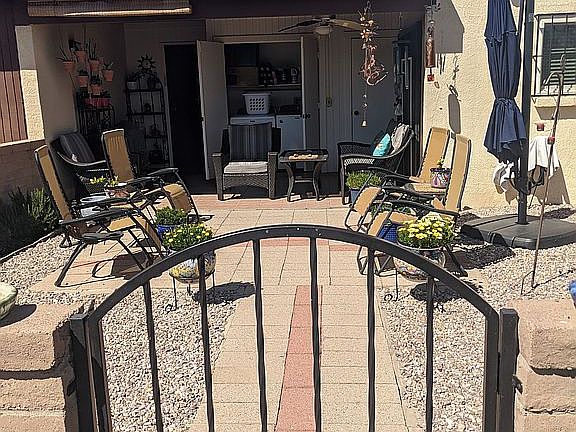 All tile floors. Many recent upgrades: a/c 2018, water heater 2020, roof coating 2020, heat resistant windows 2020, leased solar panels 2020.