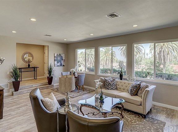 Walk into this 1970"s custom built home and you notice it has been upgraded to 2017 standards yet still retains some of the 1970's quality items like the pocket doors and huge, wall length, walnut built-in library. The large living room with stack stone fireplace offers a panoramic view of the mountains/valley. The kitchen is totally new with many unique designer features including a massive island. You'll be able to cook on stainless appliances that are top-of-the-line Thermador. The cabinets are brand new, soft close, and finished in a custom gray hue. A double door pantry is next to the informal dining area. As you walk into your master bedroom you'll face a glass wall that opens to a private atrium. At night, there is a fountain that provides the soothing sound of falling water. There is also a large window in the master bathroom displaying another view of the atrium. The oversized shower not only provides you a hand shower, but also a large rainfall shower and then 4 small body showers. You have a long double vanity and a his and hers closet(one is a walk-in.) You see that the great room has a small butler's pantry area with a wine/soda frig. The office/library room has it's own closet so it can serve as a 5th bedroom if needed. The sizable back bedrooms share a jack-n-jill upgraded bathroom. One of these bedrooms has a large barn door that when opened, reveals the closet and when closed reveals a desk/study area. All lighting fixtures are new and custom.